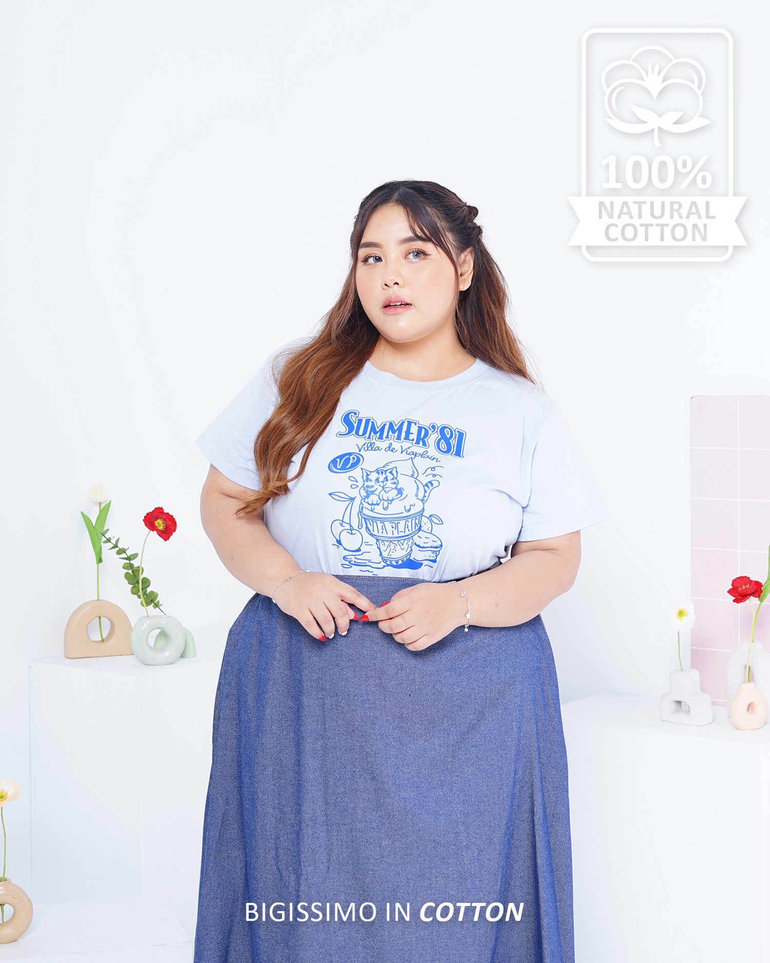 Bigissimo In Cotton – Cat Series Tee Tshirt | Atasan Wanita Kaos Crewneck Tee Tshirt Sablon Kucing Series Lengan Panjang Pendek Big Size Jumbo