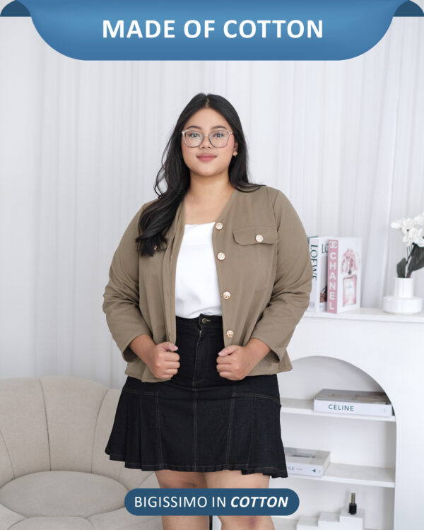 Desain blazer boxy ala Korean style dipadukan dengan detail kancing bulat gold, bikin look makin classy dan versatile