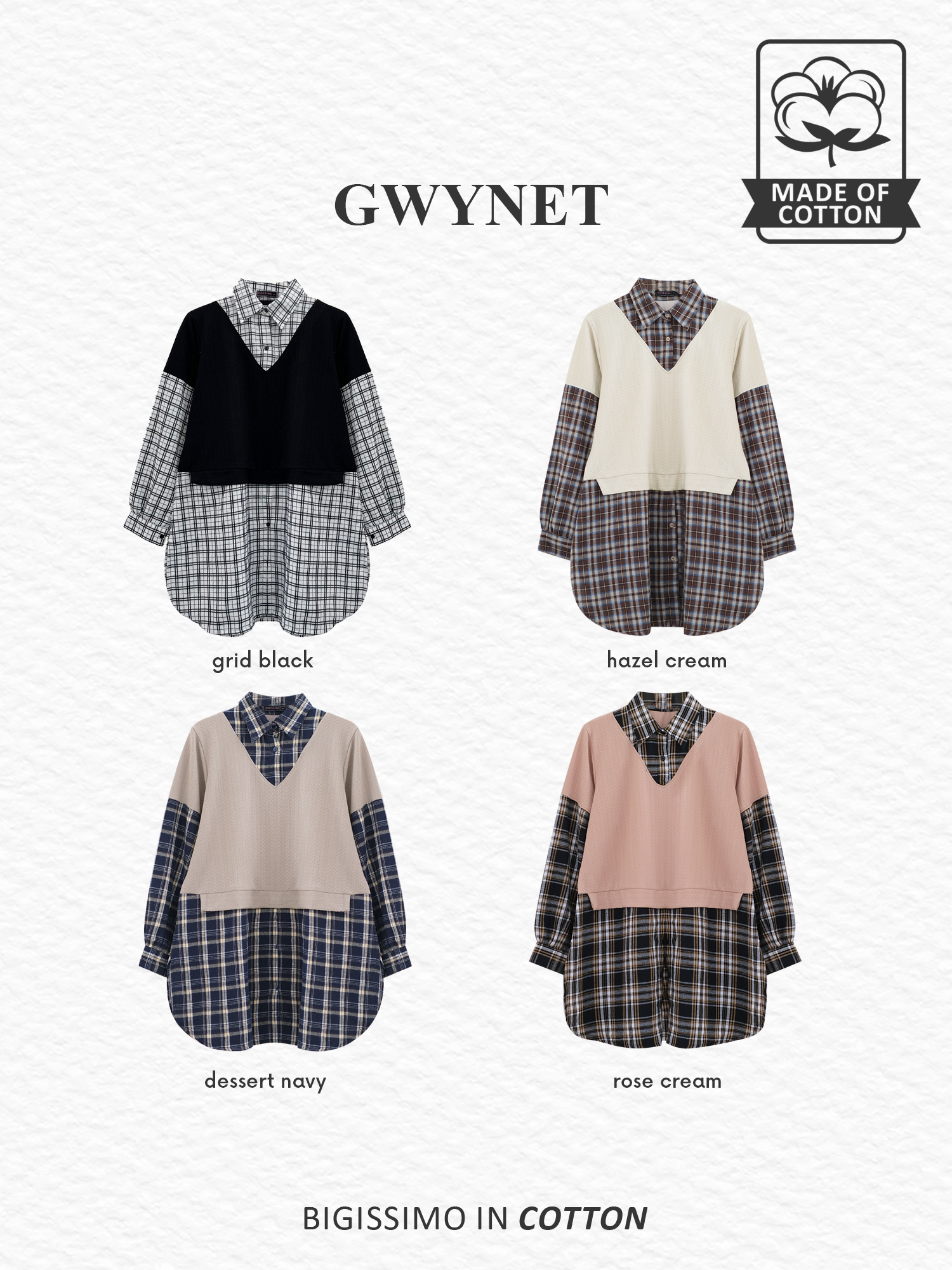 Gwynet Tunik is back! Tampil smart casual jadi effortless dengan desain preppy yang manis dan nyaman. Cutting-nya bantu samarkan perut & panggul untuk ilusi slim look. Perpaduan flannel dan knit lembut, warnanya basic & timeless. Wajib punya untuk gaya santai yang tetap rapi! ✨