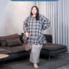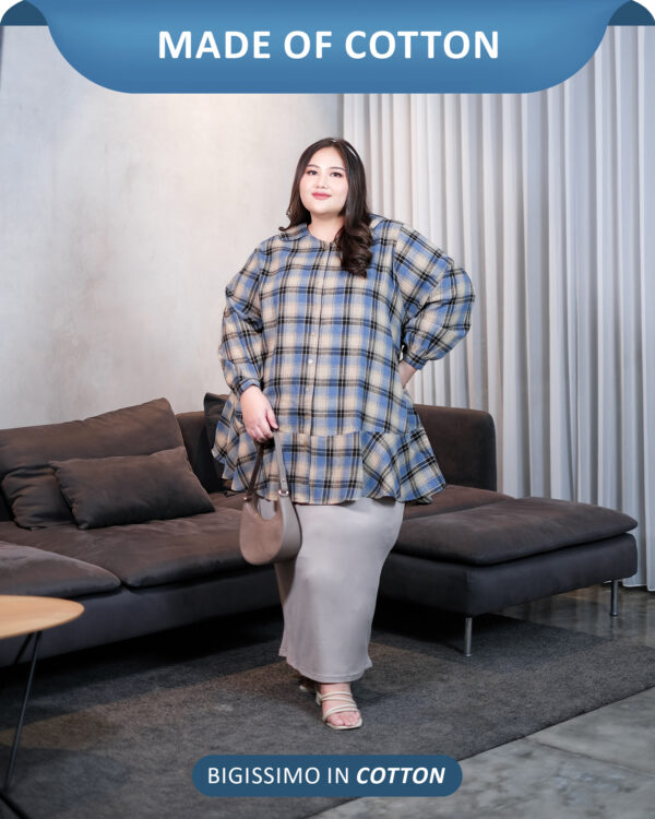 Blouse flanel bergaya Korean Style yang super chic, dengan material nyaman dan cutting A-line, menciptakan ilusi slim look saat dikenakan.