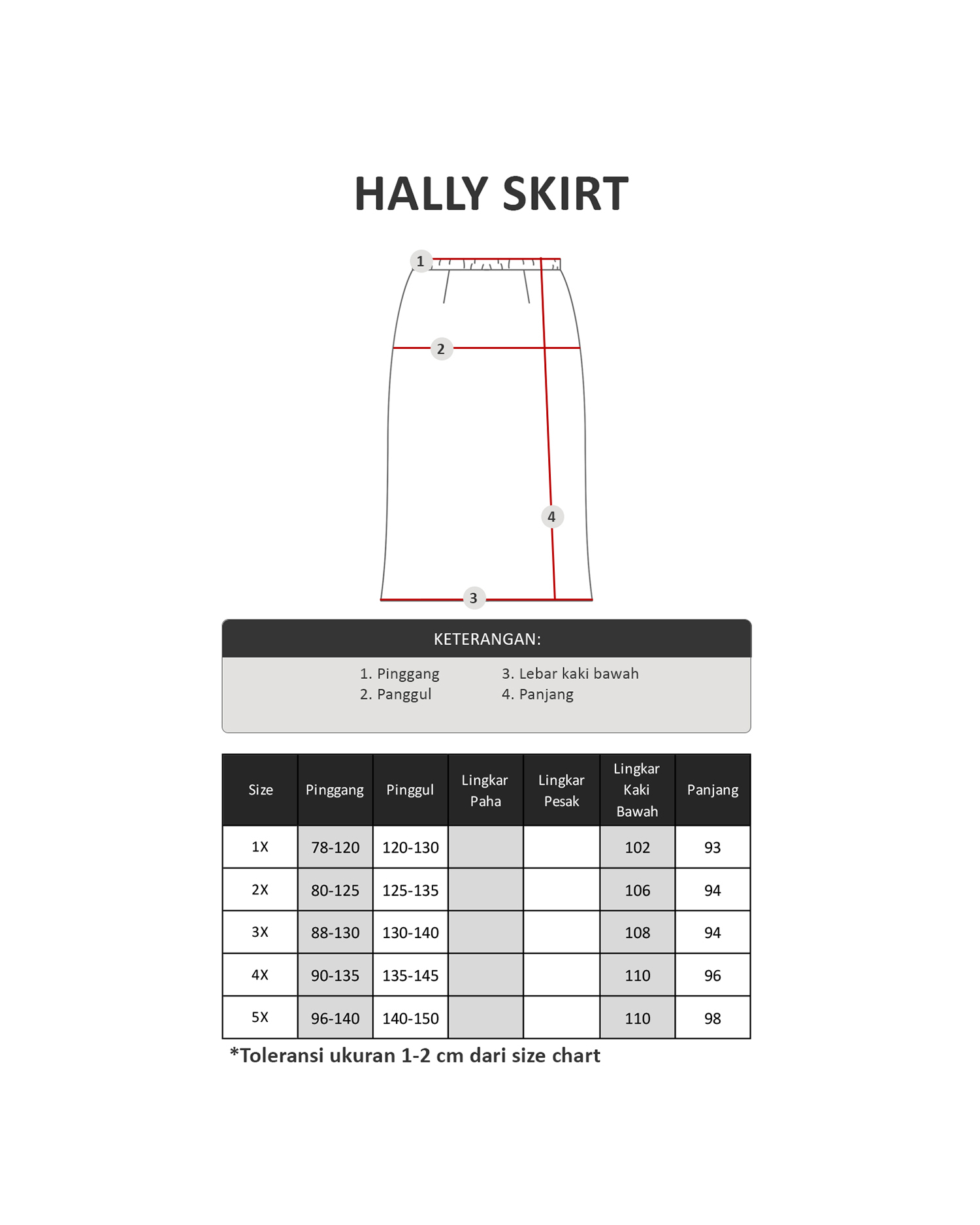 Size ( Pinggang x Pinggul x Lingkar kaki bawah x Panjang rok)