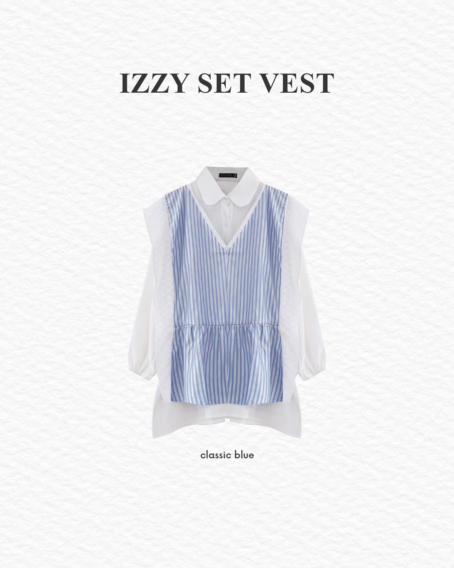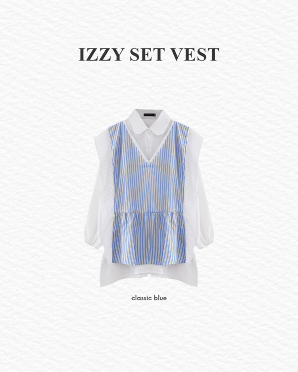 Izzy siap nemenin harimu tampil chic tanpa ribet. Vest stripe yang bisa dilepas-pasang bikin kamu bisa mix & match sesuai mood. Blouse adem dan vest cottonblend stripe yang breathable, nyaman seharian tanpa rasa gerah. Cocok dipakai ke kampus, kantor, atau ngopi bareng teman. Tampilan tetap manis dan stylish, tanpa harus usaha berlebih. Siap-siap jadi pusat perhatian!✨