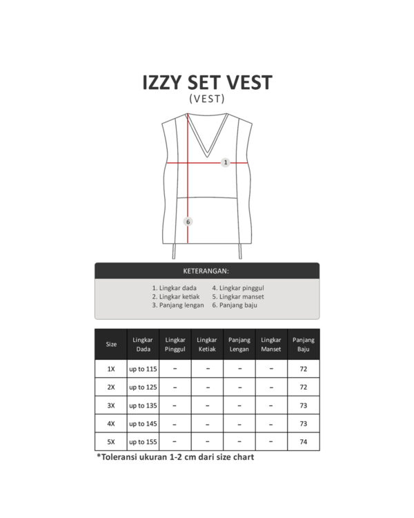 Size (Lingkar dada x Lingkar pinggul x Lingkar ketiak x Panjang lengan x Lingkar manset x Panjang baju)