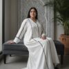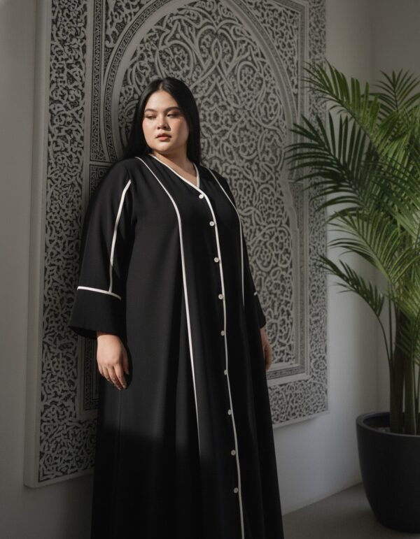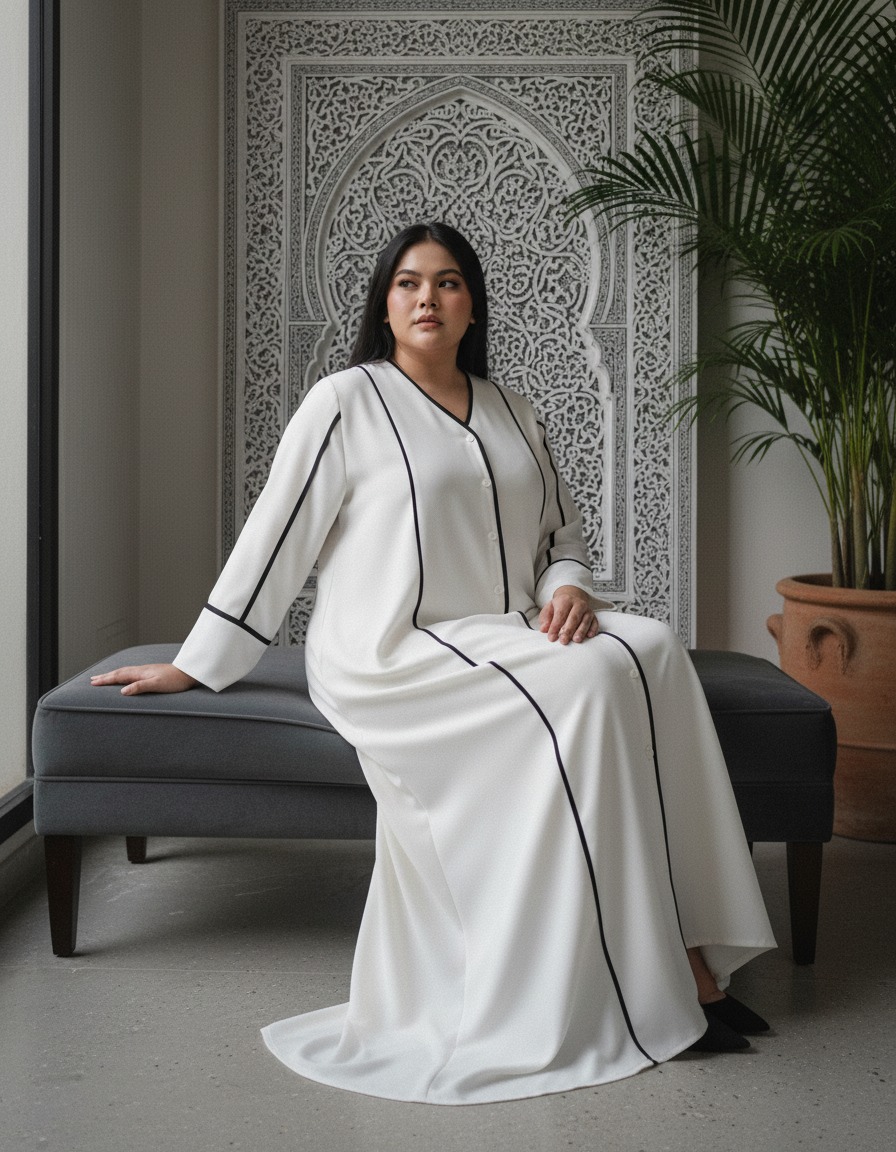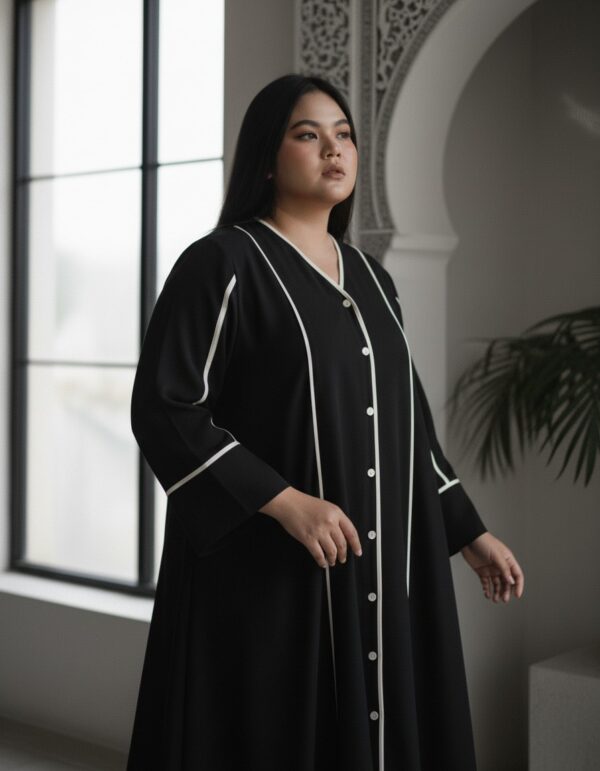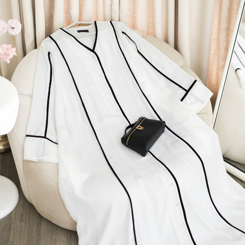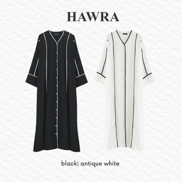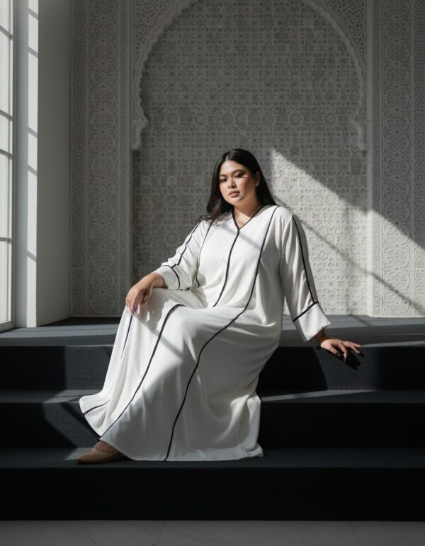 Tampil anggun dan berkelas di Hari Raya dengan Hawra Abaya. Desain minimalis yang elegan dengan pola slimlook menciptakan siluet menawan dan nyaman dikenakan saat silaturahmi. Padanan warna putih klasik dengan sentuhan modern menghadirkan ketenangan dalam setiap langkah.